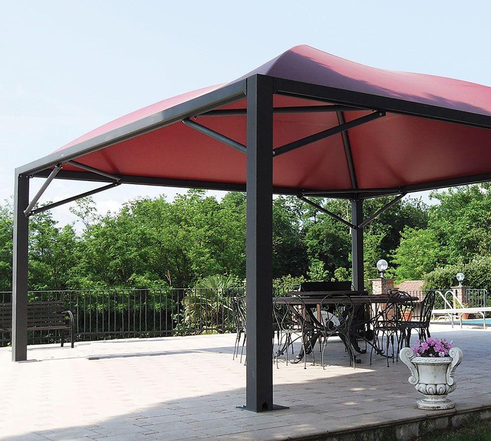 La Pagode fixe est un abri de terrasse capable de s'intégrer dans chaque espace de vie : optez pour le design "Antica" pour l'installer dans un lieu au style traditionnel ou pour le design "Lourd" pour un espace à l'esthétique plus contemporain. Si vous avez besoin de protéger plus de 150 m², choisissez sa ligne "Super Lourde" et découvrez un abri professionnel hors norme. La pagode fixe est conçue sur-mesure et peut atteindre des dimensions de 15 x 15 m en un seul module. Sa forme particulière lui confère une haute visibilité et donne une sensation de hauteur et de légèreté, tout en étant robuste aux intempéries grâce à son châssis en acier renforcé.